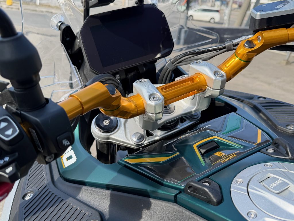 先日のイベントでご購入いただきました、AELLA可変ハンドル。 特色のゴールドに車体色に合わせた差し色でグリーンのアルマイトを入れていただきました。 「自分仕様」いいですね!